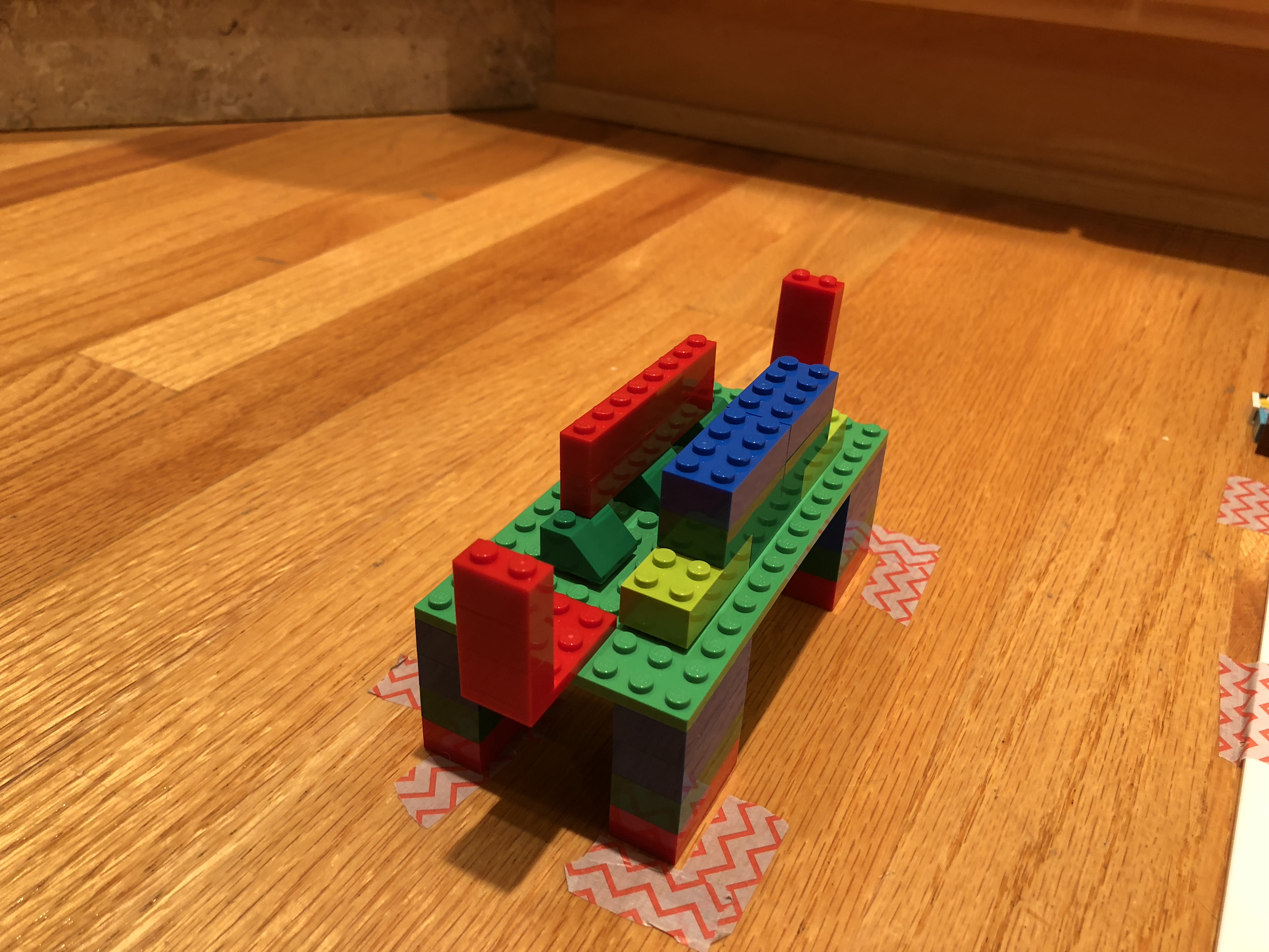 For stop motion animation, keeping the device steady and at a fixed distance/angle is important. Otherwise your animation will look like things are jumping around. I used washi tape to tape down our homemade device holder and mark where it was supposed to be located. I did the same for the Roominate walls and floor.